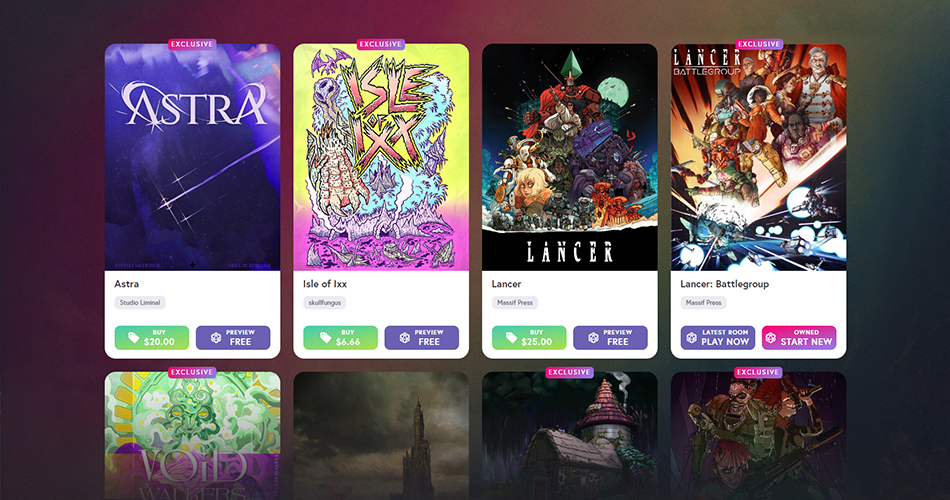 - Purchasing a game unlocks its rulebook plus any additional content such as maps, tokens, and high-resolution artwork.