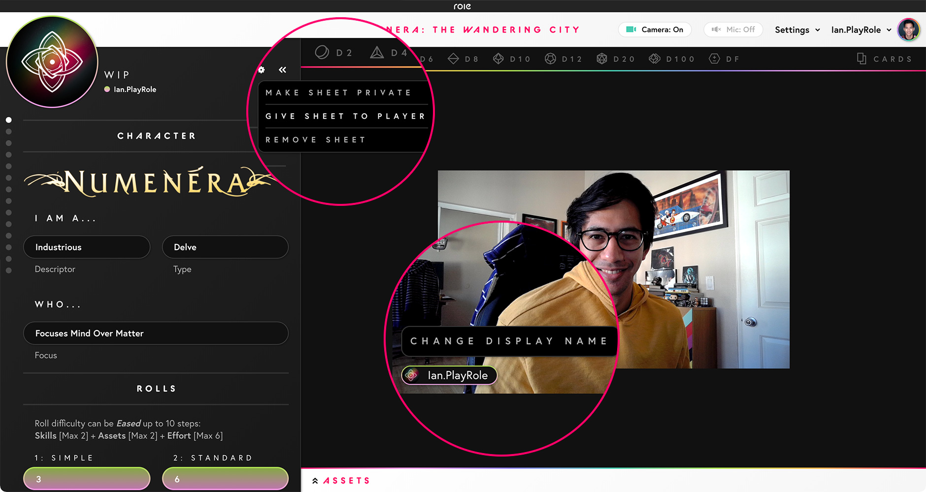 We've given player names at the table a design update. Sheet avatars and player names now appear together on a person's thumbnail. Clicking on a sheet avatar will still open that sheet. Clicking on your own name will open a menu that allows you to update your display name. This will change your name at the table only. Now you can update your display name to match your character's, show your pronouns, and showcase other important information! This will have no affect on your account name which will remain unchanged.