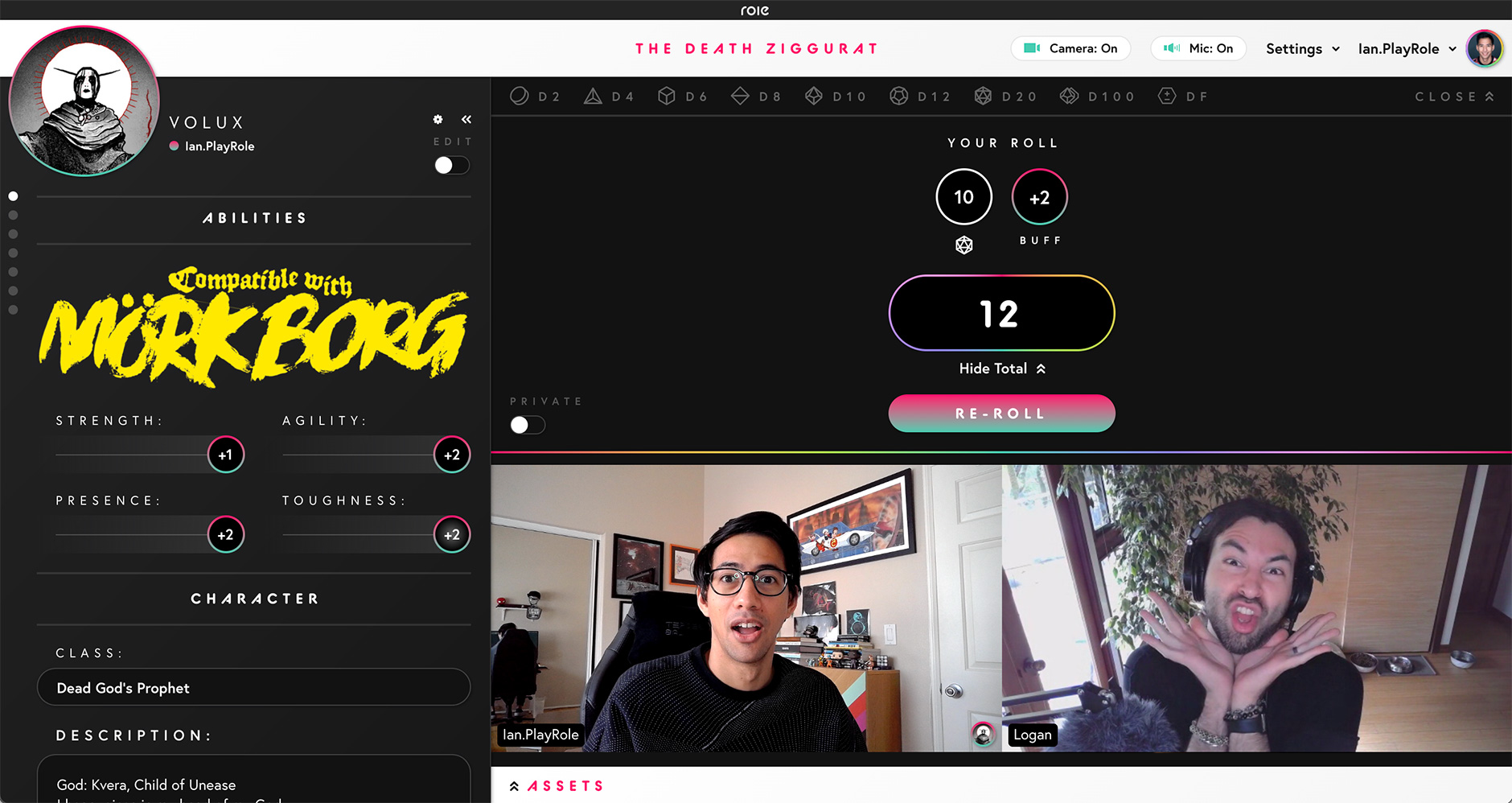 Our goal is to always do our best to keep people front and center when you play on Role. To that end we wanted to find a way to display the Dice Tray without it needing to be a pop-up over people's faces. With this update the Dice Bar is now persistent at the top of your table. When selecting dice from the bar, or selecting a modifier from your sheet, the Dice Tray will now slide down into view. The video thumbnails of people at the table will rearrange themselves so that everyone stays visible allowing you to see them and your roll at the same time!